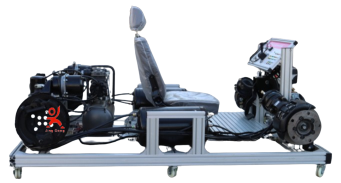 选用东风汽车制动系统配件材料,包含制动总泵、前盘式制动分泵,前盘式制动器总成、后断气分泵、后鼓式制动器总成、打气泵,储气筒,前后刹车机构、断气刹手阀、继动阀、快放阀、四回路保护阀、排水阀、安全阀、 ABS 电控单元、 ABS 气压调节阀、 ABS 轮速传感器、 ABS 系统转速信号盘,发动机电控单元、制动等开关、 ABS 车速调节驱动动电机。干燥器及限压阀总成、座椅、气压表、设备台架,等组件,配套汽车气压制动系统实验台操作说明及制动系统指导资料